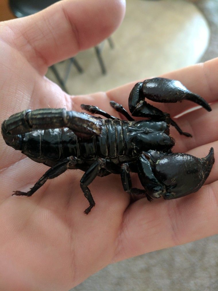 They’re voracious hunters once mobile, and the feeding response is strong in healthy scorplings.